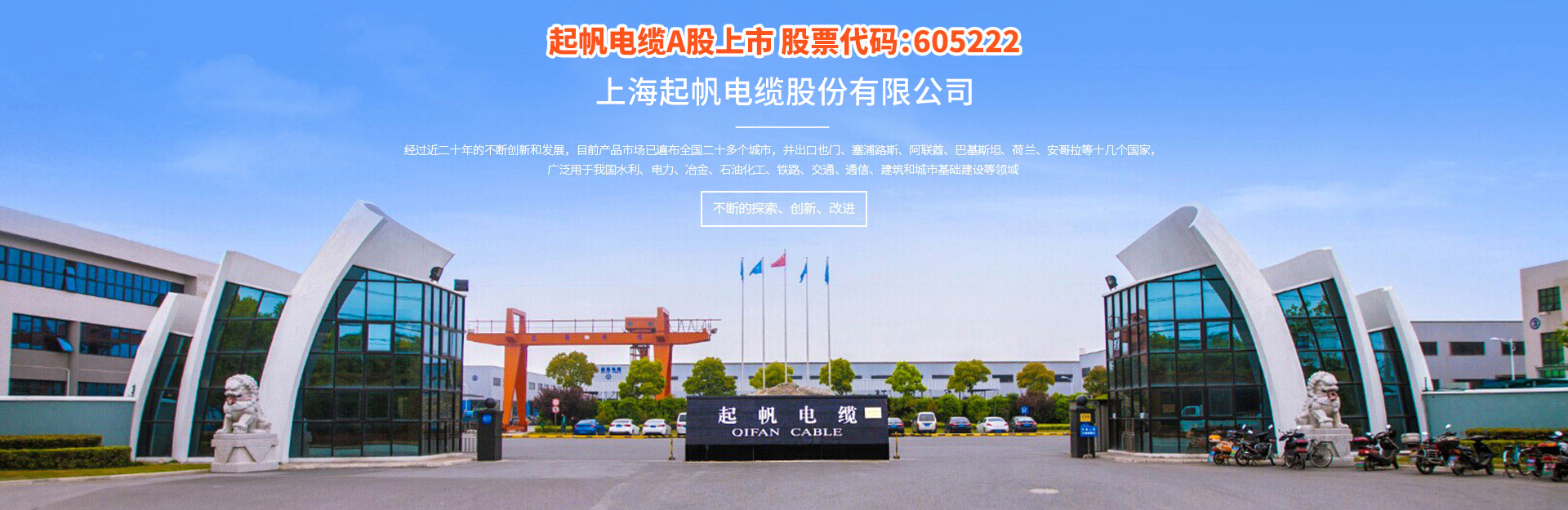 上海起帆电缆股份有限公司,公司是生产电线电缆的专业骨干企业,公司成立于1994年,经过24年的风雨历程,现已成为拥有面积350000平方米,拥有高中级技术员120多人,年生产能力近80亿人民币的规模企业。公司产品有各类高低压电力电缆,电气装备用电缆和通信电缆,主要产品规格有:聚氯乙烯电力电缆、交联氯乙烯电力电缆、低烟无卤环保型、耐火电力电缆、控制屏蔽型电缆、橡套电缆及预分支电缆等,上千种规格。